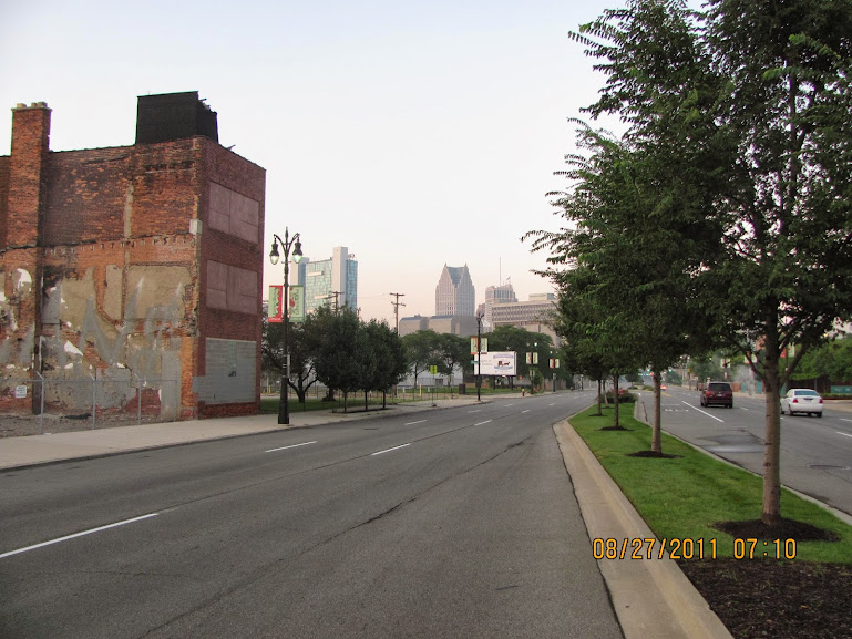 Gratiot is a wide, five lane street with lots of empty space and zero Saturday morning traffic.